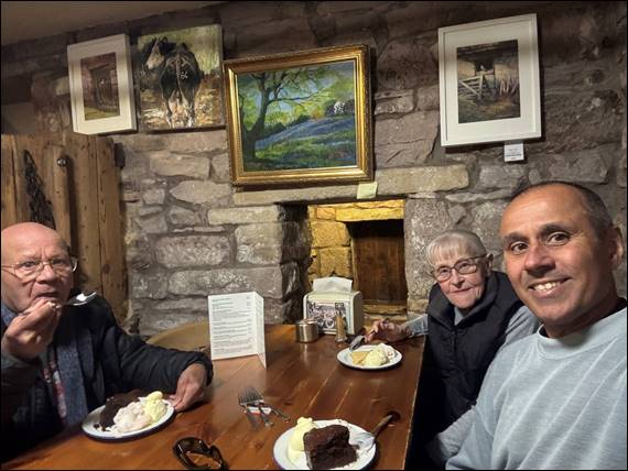 This has resulted in it often being referred to as “Le Col de Moss”, and today we fortunately did not come across any cyclists. The folks loved the experience, view or not, as we drove up and over the highest point. In the lower lying land we dropped below the cloud that still hung heavy above us. Making our way to the Rose & Crown, in Thurstonland where the landlord made the comment of “so you are the people who made the booking”. My last couple of trips have been in the warmer months and as such places were booked up: