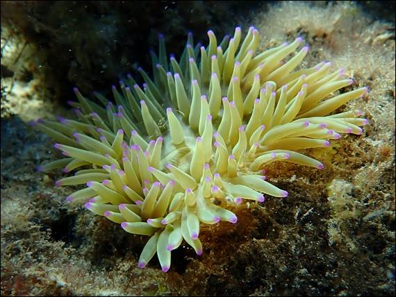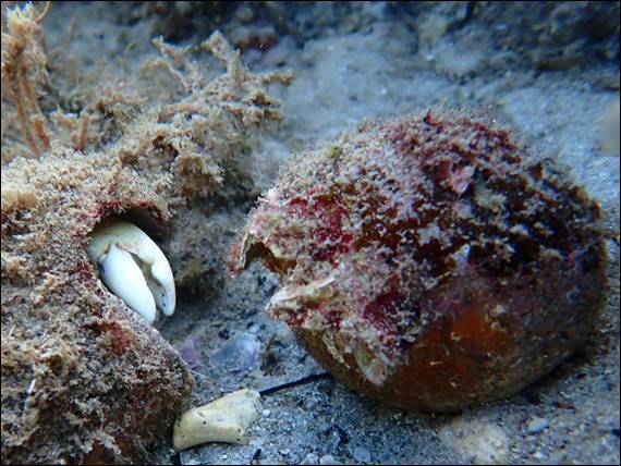 Although I spotted quite a few familiar species the fish were not out in any great numbers, but most of the images didn’t make the cut. Instead I’ve started with a Pink Golf Ball Sponge (Tethya bergquistae), one I liked because of the long, thin, root-like structures being visible. Used to secure itself. Then the above Sand Anemone (Heteractis malu). I would normally see these in abundance, but not this year. And below one of the fifteen species of Diogenid or two species of Pagurid, or in layman terms hermit crabs. Having a snoozing during the day: