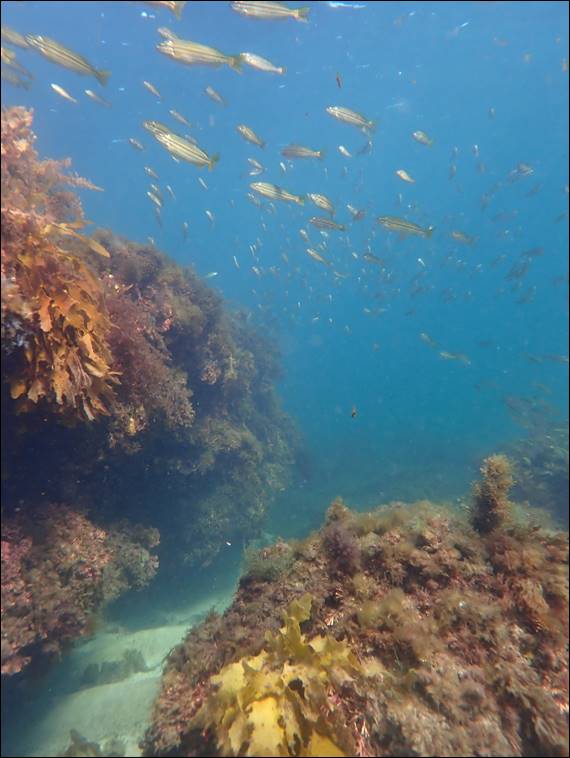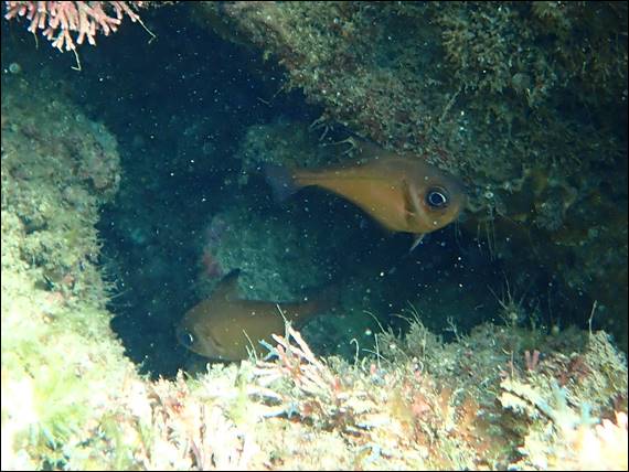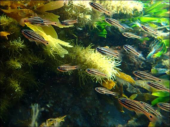 Below is one more image from Sunday, a Western Striped Cardinalfish (Ostorhinchus victoriae). As with so much marine life, another nocturnal species. It can however be, and is often, found as it shelters in caves and under ledges during the day, as this adult at a whopping three inches was. And while it may be a night swimmer it is one of the fish seen most times I come out, that is if I am in the mood to duck dive and check out the hidey holes. This week my work from home days were a little different, working in my favour: