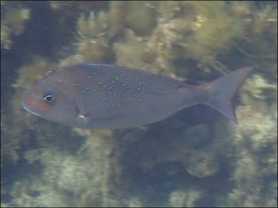 Included to show the water clarity. The view was pretty damn good! I also came across large schools of Australian Herring (Arripis georgianus), which can live up to a ripe ole age of twelve. However, they are very popular and most caught by both recreational and commercial fishers are between 1 and 4 years old, according to WA’s fisheries research. A bit of a scary thought for their long term future, seeing they become mature at around 2 to 3 years old. Another popular fish, one I have only seen once before, is the Snapper (Chrysophrys auratus):