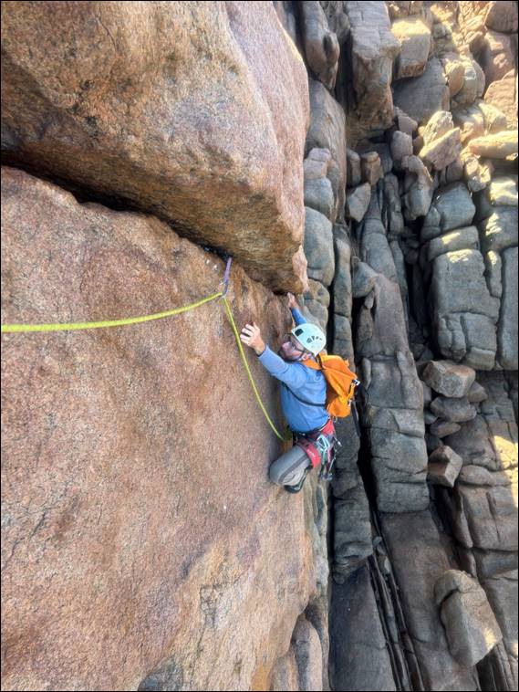 Being consumed in my own world, and making sure I could keep looking down at Rongy and Howsie when they were on lead, the growing numbers did not however noticeably chew into my social battery. Although I was probably not feeling as isolated as Howsie was when he led this gem. One that Craig may recall as being a tad sketchy and run out. At least this time it was not the belayer taking the images. Craig would also likely be the one to point out that in several images that the rock looks to be glistening, which put paid to any of those lofty goals: