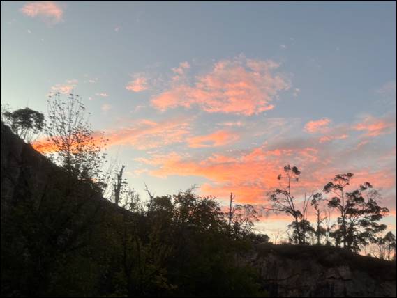 On weekends we could start a bit later to least allow the air temperature to warm up. That would however result in missing out on the glorious spectacle of watching the world wake up. Friday driving up the hill for another before work climb, the sky had a big patch of cloud that looked like it was going to be set on fire as the sun worked its magic. It was not to be, but there was a bit of colour as the session started. This time with three, as Josh gate crashed the party. Having set himself a challenge meaning he needs to build up his contact time on rock: