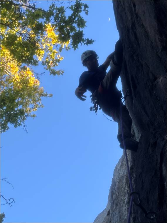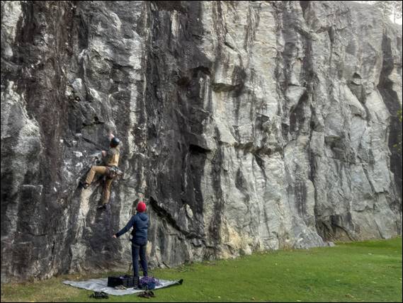 He’s decided that by the time the year is out he wants to climb one grade 20 route clean, and now it is print there is no backing down. He has not gone so far as to say he needs to lead it, making it more realistic in view of his limited ability to get out. Today he joined us for the first two climbs. The first he went well on. While he persevered to get to the top of the second, the start gave him a bit of a spanking. Coming down toasted, he opted to head off for a run allowing Howsie and I to crank on a few routes at Josh’s desired grade and above: