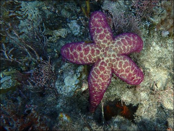 Next up is the Mosaic Seastar (Plectaster decanus), which happens to be the only species in the genus Plectaster. This is one of just a few poisonous sea stars. It is not a huge risk to humans but if handled for too long can cause numbness. It is believed the toxicity comes from what they eat. This seastar is again a carnivore but is also a specialist feeder, nourishing itself on stationary invertebrates. Mostly sponges and bryozoans. Absorbing the chemical defences of the sponges they eat, which is considered to then persist in the seastar making it poisonous: