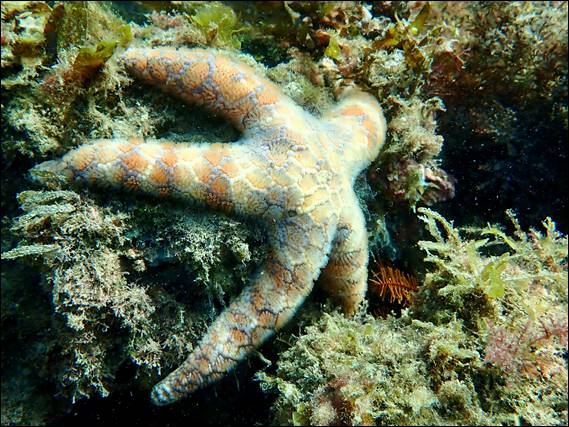 I did however see some other marine creatures worthy of mention. Starting with this Pale Mosaic Seastar (Echinaster arcystatus), of which I spotted a few. Not a new find, but one that I always enjoy. When it comes to diet, and once an adult, this carnivorous seastar is mostly a predator. However, species in the genus Echinaster are also known opportunistic feeders. When prey are scarce they have been known to feed off the dead, and are also able to switch their diet and sustain themselves by absorbing nutrients from decomposing organic matter: