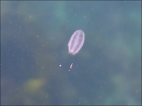 I wasn’t able to get a clean image of that and also struggled with my next two finds, but had to include them. The first is a very young Comb Jelly, for which I’m not game to work out which species. They have a quick and basic life cycle, and can reach maturity in a few months. Usually at night they release thousands of eggs and sperm,. Fertilization results in a free swimming planktonic larval stage. Then during several stages they develop into adults. You may notice that this one has tentacles, these are lost as it transitions to its final adult form: