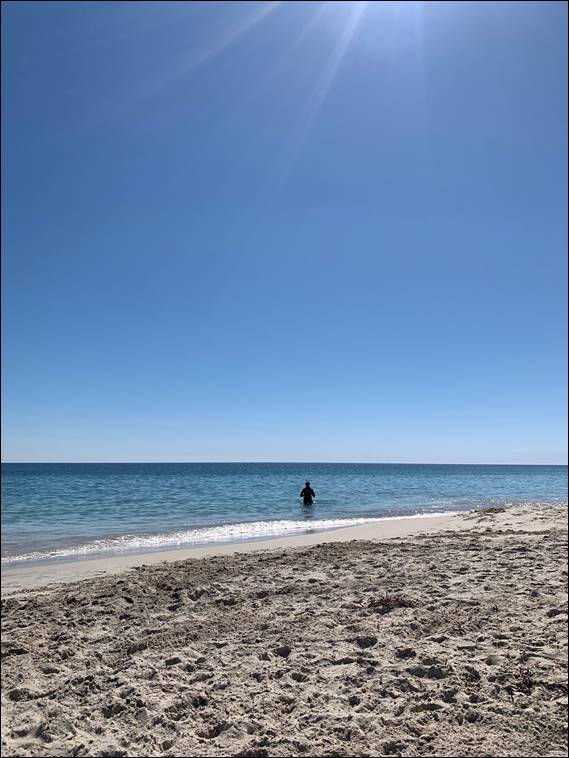 Then on Sunday after a morning out, clinging off the walls of the quarry at the Welly Dam, Lisa and I headed to the beach with the poodles. I didn’t feel bad when I left her on the shoreline. She’d come armed with her backpack chair and intended to relax, plus by chance a few people she knew were down with their dogs. As the dogs played and humans had a dip or too, this human lost himself in another underwater adventure. Soon finding myself several hundred meters out, which I later heard made the others ask Lisa if she ever worried about me: