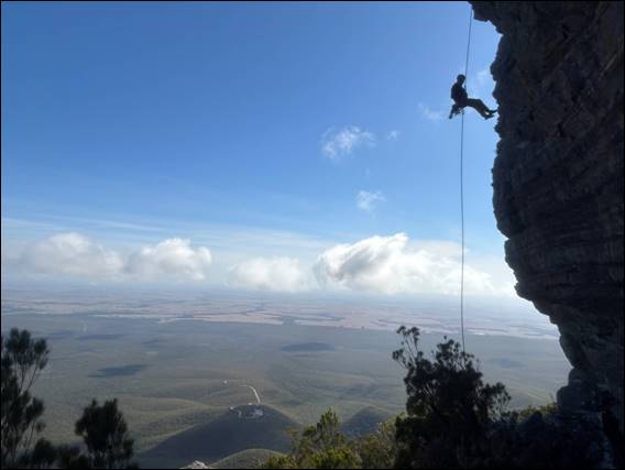 Our first destination was south face of Mount Trio. A wall that I looked at with yearning during Lisa, Elseya, and my many camping and glamping trips since we first stayed at the Mount Trio Bush Camp in 2010. But not one I ever managed to get to when I came here to climb. So I was excited to sample the delights on offer. The Stirling Ranges was the place where the first roped climbing routes were undertaken in Western Australia, and it remained the main focus into the late 70s. The first known but not recorded line, was establish on Mount Trio in 1957: