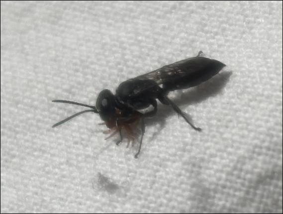 Sat down munching on snacks several Potter Wasps (Trypoxylon) flew round us. The below one landed on my top, which provided the perfect background to show the prey it had captured. These solitary wasps are, for humans, non-aggressive. But this species is not for spiders. Leaving their prey with their eggs, so when the larvae hatch they have a fresh live meal. The spider it has caught is doomed to be buried in a purpose built mud nest or any hole that seems suitable. We watched some going in and out of holes in the rock next to us: