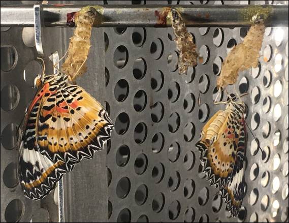 Sadly walking round the garden at one in the morning wasn’t ideal. Most of the butterflies were asleep. I probably found close to ten of the reputed forty seven species they have here, but left them be and the only image is of a couple of newly emerged New Lacewing (Cethosia cyane) in the lighted pupa enclosure. The next flight was a bit of a killer at thirteen and half hours. Mostly because I didn’t want to disturb the two elderly people sat next to me. So a note to myself that an aisle seat is the way to go next time:
