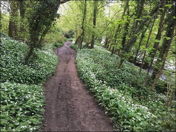 Monday came and while the rest of the world went about preparing for a normal weekday, I was back out for a seven mile walk that took in canal and this time the River Etherow. Just before I left the canal I spied an unmistakable Grey Heron (Ardea cinerea), being the first time I have seen one on my morning walks. While it may have been a damp spring, the flowers were still out and carpets of Wild Garlic (Allium ursinum) covered some sections of the forested areas the path went through. Making the air smell glorious, if you like garlic: