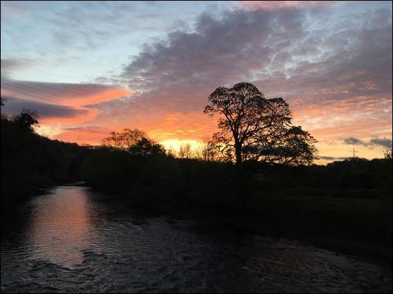 At these flower shows, the displays are raffled off and while we didn’t win anything the lady who photobombed the image, and is talking to Seeta, gave her wining arrangement to my Mam. So we did not go away empty handed. It may not sound like we did much on Monday but we got back to the house sometime after four, making it a long enough day. And the next day there was an even earlier appointment, again for my Dad. As such my morning walk was a short four miles, being rewarded with a stunning sunrise: