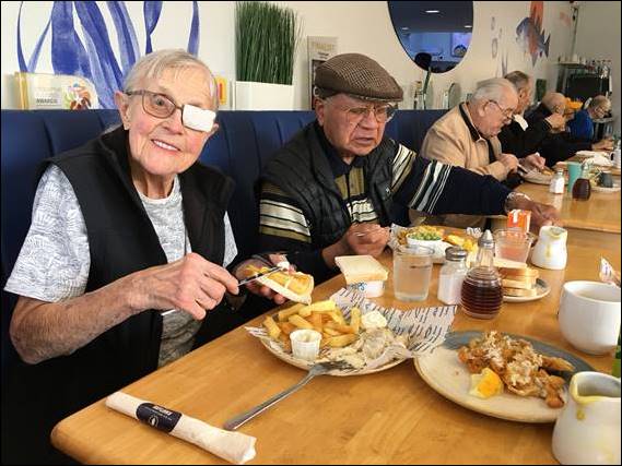 Back at the house the folks were up and getting ready, today we had to be out the door for an appointment. Seeta is their primary carer and does a sterling job of fitting the many, many appointments in. In addition to the more enjoyable trips out, amongst work and family life. These appointment are all over, requiring at times an hour drive each way, so can chew into a big chuck of the day. After my dad’s physio appointment it was lunch time and we went to Woodley hoping for a feed of fish and chips, but it was closed so instead we went to a café: