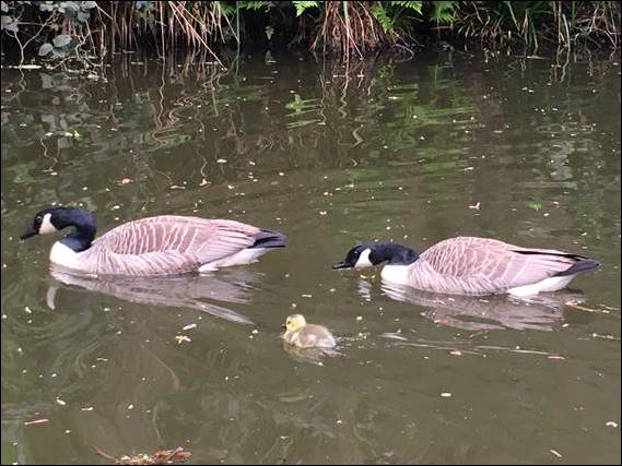 The tunnel was certainly very well lit, and I find it interesting that the book specifically mentions people may not be comfortable using the tunnel. As there are equally long tunnels to go through on the Peak Forest Canal, and they have no lighting in them. No special mention is made in the book for alternative routes for these. And on the final section of today’s walk, along the canal, I went through the 160m Woodley Tunnel in darkness. After which I saw the only Canada Goose (Branta Canadensis) gosling I saw during my walks: