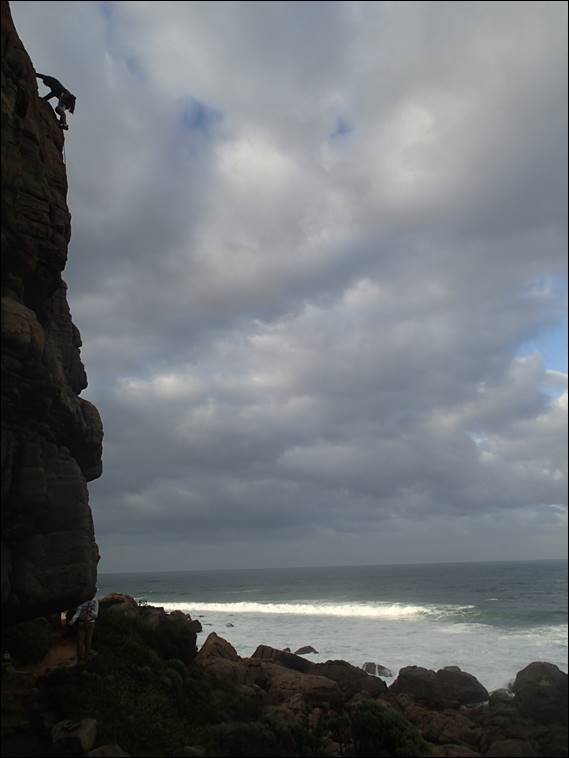 The smoke haze lifted as the day went on, and the clouds also drifting away. It had rained here last night. And as the firefighters battled to get the fires under control, I am sure they would have welcomed the cooler weather and light sprinkle that came with it. All of these factors gave me hope that the crag may be quiet. With luck the climbers from Perth were less likely to make the trip down during uncertain conditions. Of course, with us getting to the crag for 5:30, there was no one about at the start. The rock was damp from the rain and also had that salty feel: