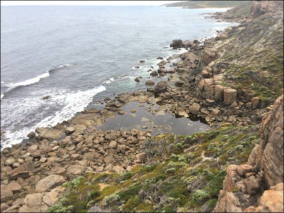 On Sunday I had been invited by Ash to head out to Wilyabrup with him and his mates for a climb. Some may be surprised to hear that I declined, and this was for several reasons. First I was feeling a tad weary from last weekend’s big hike, Friday morning’s climb at Welly Dam and a busy four days of playing catch-up at work. In addition there were going to be road closures resulting in the need to take the long road out during which I would have to battle with roadworks. Lastly it was going to be hot and my hay-fever has been blowing up recently. With all those thoughts rattling round in my brain, the idea of a cool dip in the ocean seemed more appealing. So for the second day as 8am arrived, Eski and I headed out: