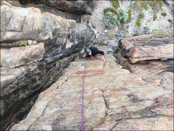 This probably included “why am I doing this”, “surely this is not the right way”, “I wonder if they will let me down if I ask” and of course we wouldn’t, which was proven when Nadia asked. It was pleasing to see them not give up and they both made it up, and persevered even when they both were close to coming off at the midway point. This route has a bit of face, crack and arête climbing, as well as other styles. So they needed to make use of the techniques the last three climbs had required, all in one route: