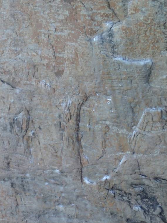 Rongy broke the stalemate and started the first climb of the day on First Climb. Meanwhile Steve was keen to jump on Hope, so he racked up. Now you may be wondering about the next image and its relevance. There is none other than on the last weekend the WA climbing association had a trip down here, and as is usual with gym climbers the place was splattered with chalk. Hold being marked with ticks and one even being indicated by a smiley face, seeing this it is not surprising why some complain about climbers disfiguring rock faces: