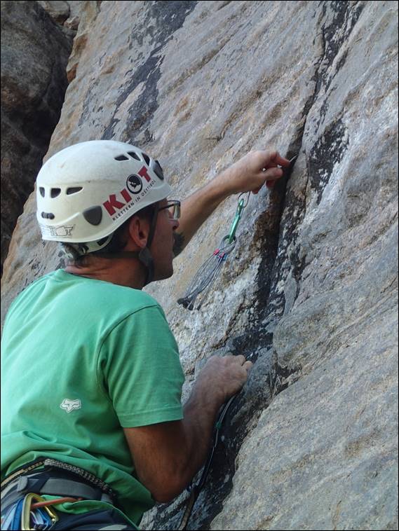 It is for good reason that it can feel pumpy, the gear is small in the bottom of the slab, which is also the crux section. RPs are the only choice and you really have to trust them as it is not until higher up the slab that the holds become more positive and gear bigger. This explains the yo-yoing and the possible over gripping that Rongy was now experiencing. He kept going and in his usual style enjoyed and soaked up the experience, as oppose to allowing it to get to his head:
