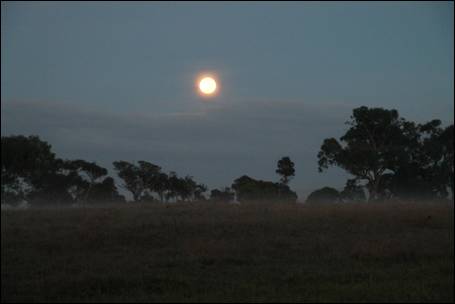 As we had a big journey ahead of us I left home at 6:30 in the morning to get to Bunbury, meet up with Steve and get an early start. After saying bye to my two girls I headed off while watching the full moon go down: