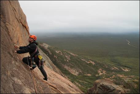 Since being in WA I have wanted to get back onto some proper big multi-pitch climbing. While I have climbed at Peak Charles and the Porongurup’s which are both a couple of hundred meter as the climbs I have done there have generally been on clean faces and bolted. West Cape Howe got closer but only being two pitch it didn’t give that true out there experience. The place to get that here is the Stirling Ranges, I’d attempted a climb on the big wall of Bluff Knoll in 2006 but route finding at the base of this 250m’ish wall is pretty hard and we were not confident enough to go any further than the first pitch. However, a few weeks back I got a second chance to attempt this real big wall which was reputed to give you that alpine experience.