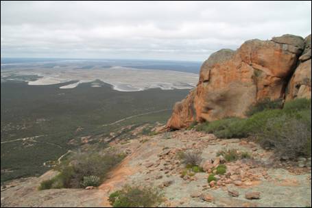 Last year I went on a week long climbing trip to the south coast and it was so good that we decided to do it again. This year, however, we left it a bit late and the rains started to come in so we change the destination and decided on a remote 300m granite monolith approx 700km east of Bunbury and 100km north of Esperance called Peak Charles. I had been here before in 2007 with Craig, a great trip marred only by the fact he had forgotten to pack his climbing shoes. So this year I came armed with spare shoes and harness in case Ryan, Steve or Chris had forgotten theirs!