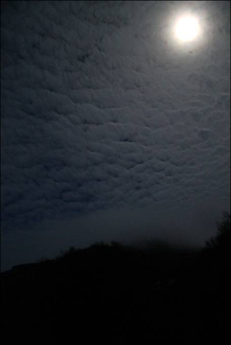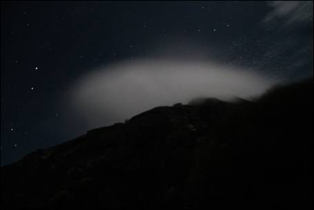 The next day I did my usual routine of getting up at 5am to look at the sky, make a cuppa and get the others up. This morning was amazing, mostly a clear sky with a bright moon lighting up the cloud that hung over the crag like a crown. It is sights like these that make waking up early so worthwhile: