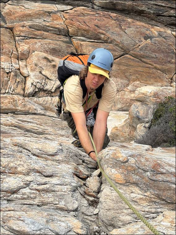 I’d been scouring all the cracks and crevices without success. This made the sight of the King’s Skink (Egernia kingii) soaking up the sun feel like a privilege. Chilling out on a steep slab. Scampering for cover if we made any sudden movements, before coming back out. Making our roped climbing efforts today seem trivial in comparison. We were not however out for egos and high grades, just having fun. Ending the session in exactly that way, with a first ascent up another one of the fine easy angled walls to create Sunny Sidewalk: