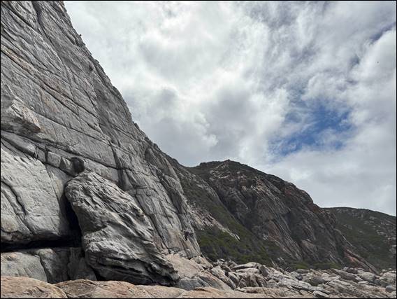 We were also surprised not to see any other wildlife. Insects were about but there was little else, and not for want of looking. Taking on Sarah’s more enthusiastic approach to herping, we checked cracks and crevices as we went. Maybe the cooler and slight damper days had kept them all at bay. For our second day in the expansive park the approach to the coastline was much easier. It involved a very pleasant rock hop, passing numerous very impressive boulders before we came across our quarry. A series of cliffs, very different in appearance: