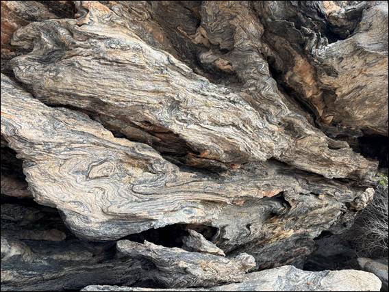 This gave us a hint as to the type of rock we may encounter, although just like the flora here the geology across the park is also quite varied. We were however sticking to the confines of the coastal crags. These are made from the younger rocks in the area, being a mere 1100- 1800 million years old. Best described as metasedimentary rock, they started out as siltstones and sandstones. After being placed under extreme heat and pressure they were transformed into Phyllitic Schist and Quartzite, in formations that tilt towards the land: